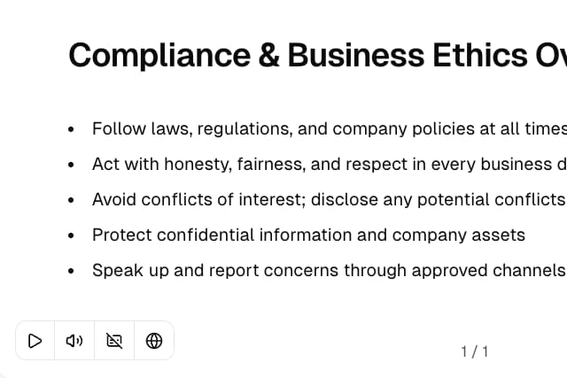 Slides, images, and professional voiceover narration — all generated automatically based on your content.